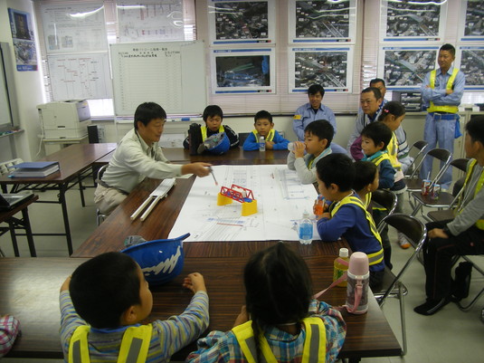 の工程で行いました。 現場見学は、所長さんの丁寧なシールド工事の説明 でわかりやすく、普通の子では体験できない貴重な 時間をすごせたと思います。 お父さんたちの働く現場を見学できて、