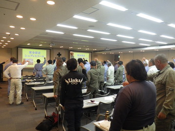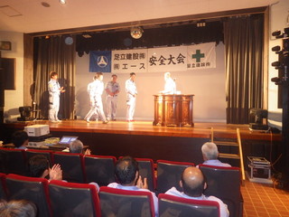 開会の辞→主催者挨拶→協力会会長挨拶→不適合報告 →交通安全講和→特別講和(職場のコミュニケーションと心の安全) →優良協力業者・優良職員表彰→工事部目標発表 →安全宣言・シュプレヒコール→閉会の辞 の順で大会は進みました。