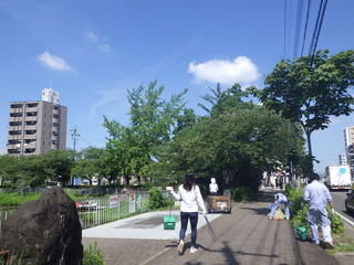 スタート時は川名公園の周りで、ゴミが全然ないなと 思っていましたが、終わってみればいつもと同じ程度 になりました。 今回のコースは、比較的フラットではありますが、距離があり、 暑さも相まってとても大変でした。 休憩も多めに取り、約2時間かけての作業でした。