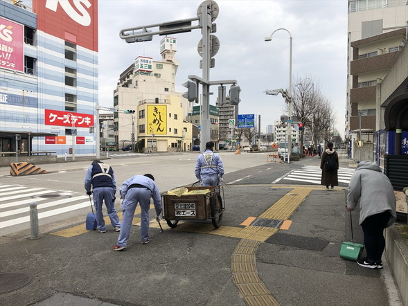 南側歩道からスタートして、今回もゴミが少なく早く終わるな= と思いながら、北側歩道に移り、一変!!ゴミが多いではないですか。 歩行者の数はそんなに変わらないのになぜなんだろう? 結果、いつもより一袋多くゴミを回収しました。